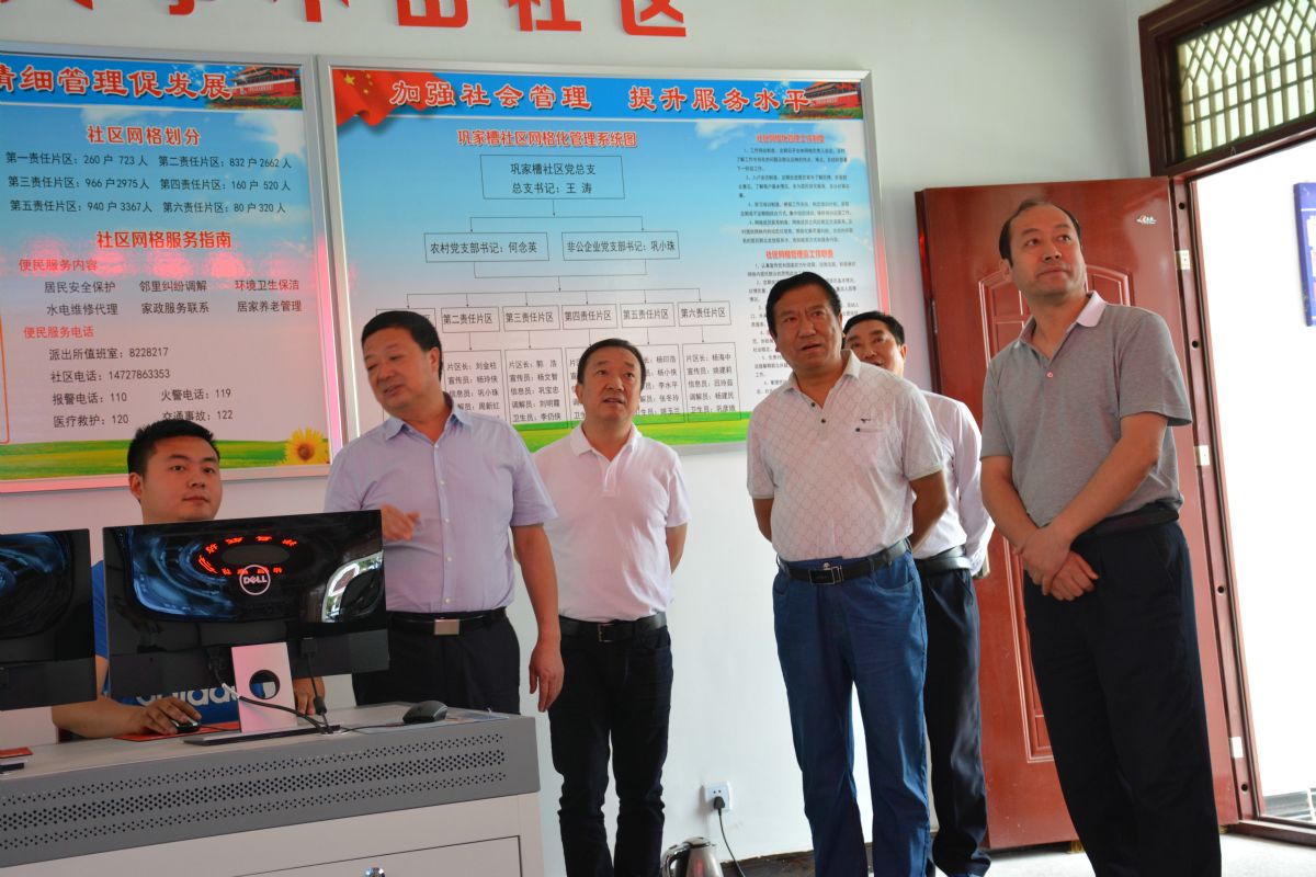 在磨子桥镇杨记明一行参观了镇民情报告信息中心和综治维稳中心,详细询问了民情报告制度运行情况及镇综治维稳中心机构设置、人员编制、工作待遇等情况。在纸坊办事处巩家槽社区观看了立体化治安防控体系建设,认真理解了视频监控功能作用发挥情况。在县公安局110指挥中心实地观摩了操作演示,全面听取了有关情况介绍。